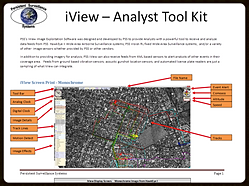 PSS’s iView Image Exploitation Software was designed and developed by PSS to provide Analysts with a powerful tool to receive and analyze data feeds from PSS HawkEye II Wide Area Airborne Surveillance systems, PSS Vision RL fixed Wide Area Surveillance systems, and/or a variety of other image sensors whether provided by PSS or other vendors.